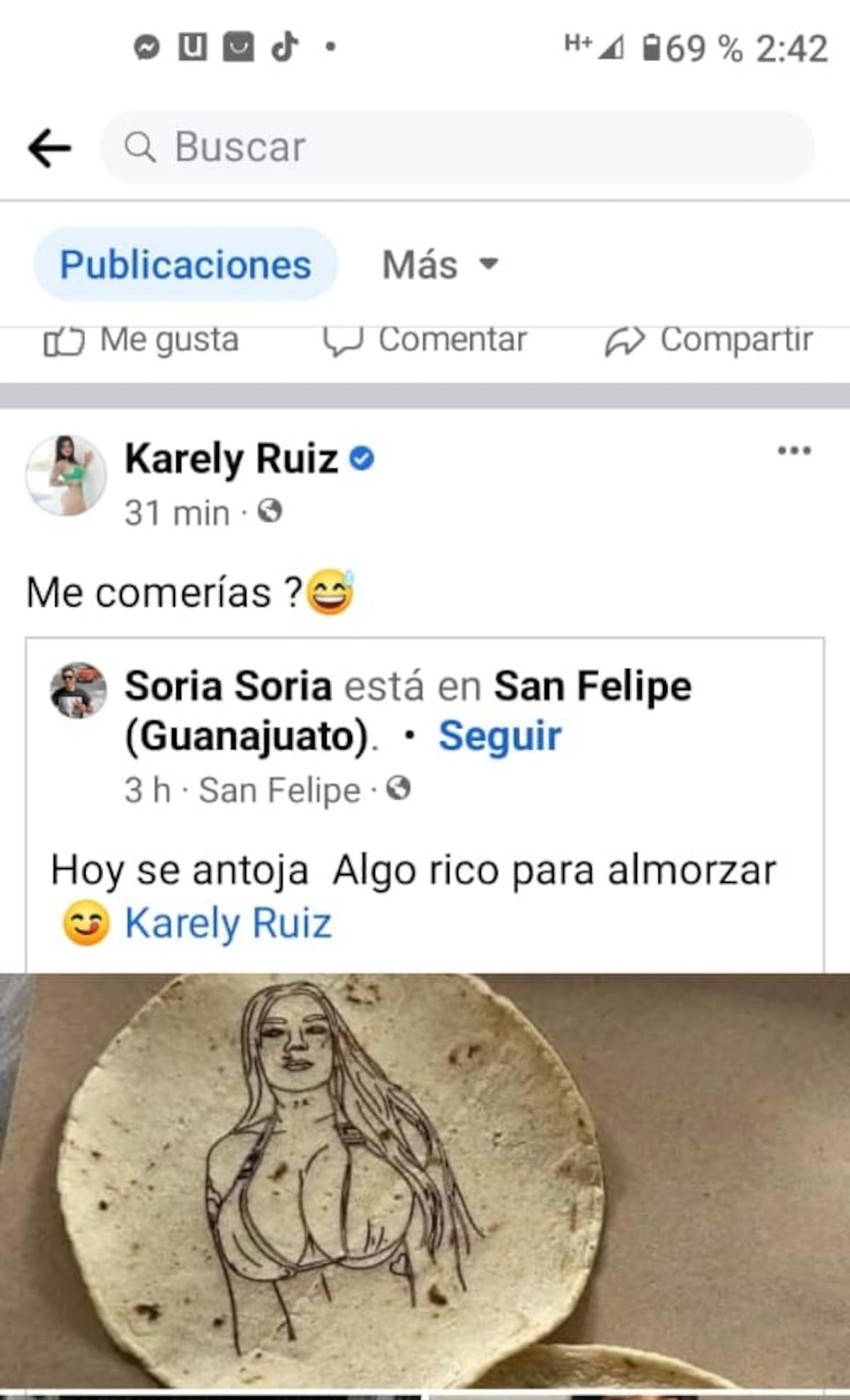 Las tortillas de Karely Ruiz se hicieron tan famosas que ella misma reaccionó a este invento: “¿Me comerías?”, preguntó en Facebook tras compartir una foto del alimento.
