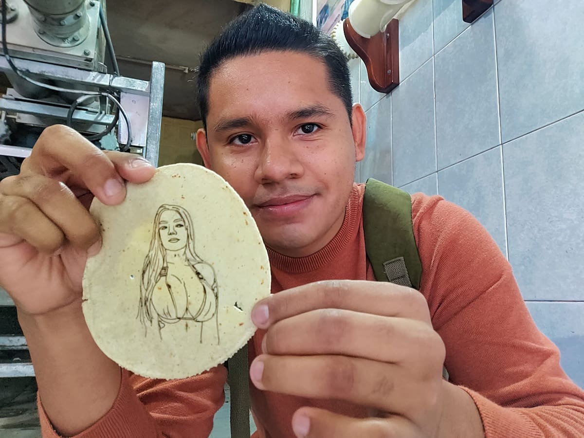 Se me ocurrió, si lo hacen en un pan se puede hacer en una tortilla, investigué y con la misma máquina se puede hacer”, dijo el vendedor al creador de contenido Chico Escalante.