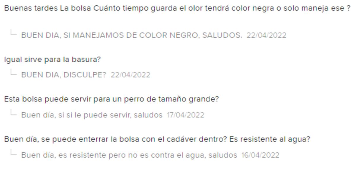 A través de dicha red social, se difundieron capturas de pantalla del anuncio y algunas respuestas recibidas, en la que algunos interesados preguntan sobre la funcionalidad de la bolsa, es decir, cuántos cuerpos caben en ella.