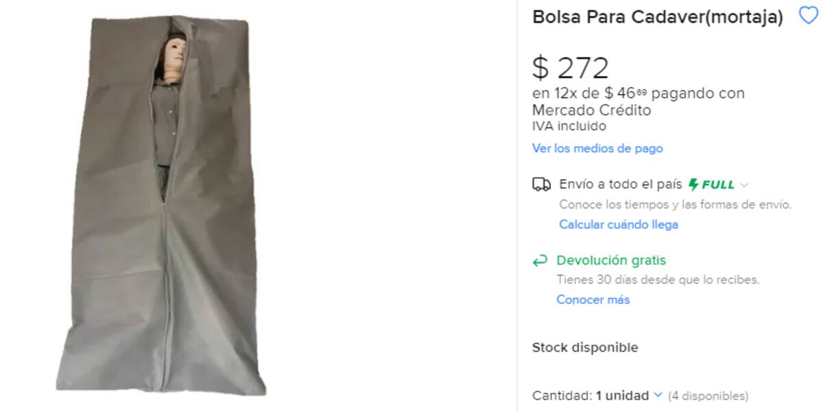 Ciudad de México.- Una publicación difundida en Mercado Libre, causó temor entre usuarios de TikTok, en el que al parecer se venden bolsas para cadáveres.